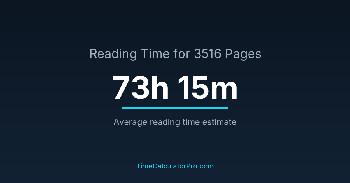 Reading 3516 pages usually takes approximately 73 hours and 15 minutes for the average reader, though this can vary depending on concentration and reading habits.