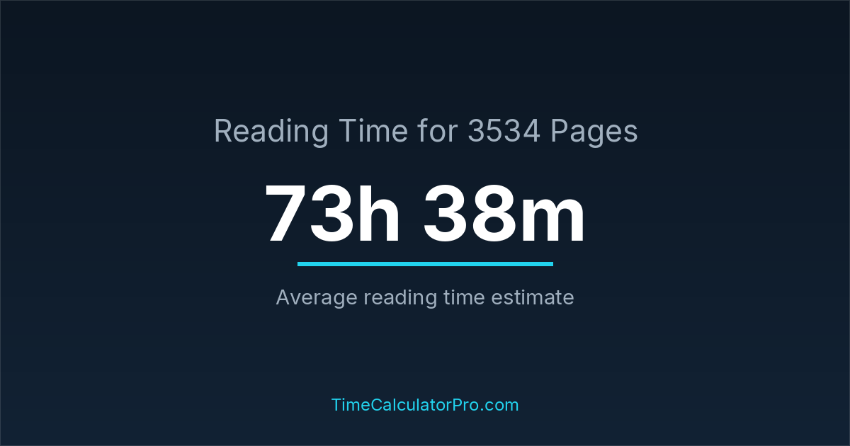 If you are wondering how long it takes to read 3534 pages, the estimated reading time is roughly 73 hours and 38 minutes based on common reading speed averages.
