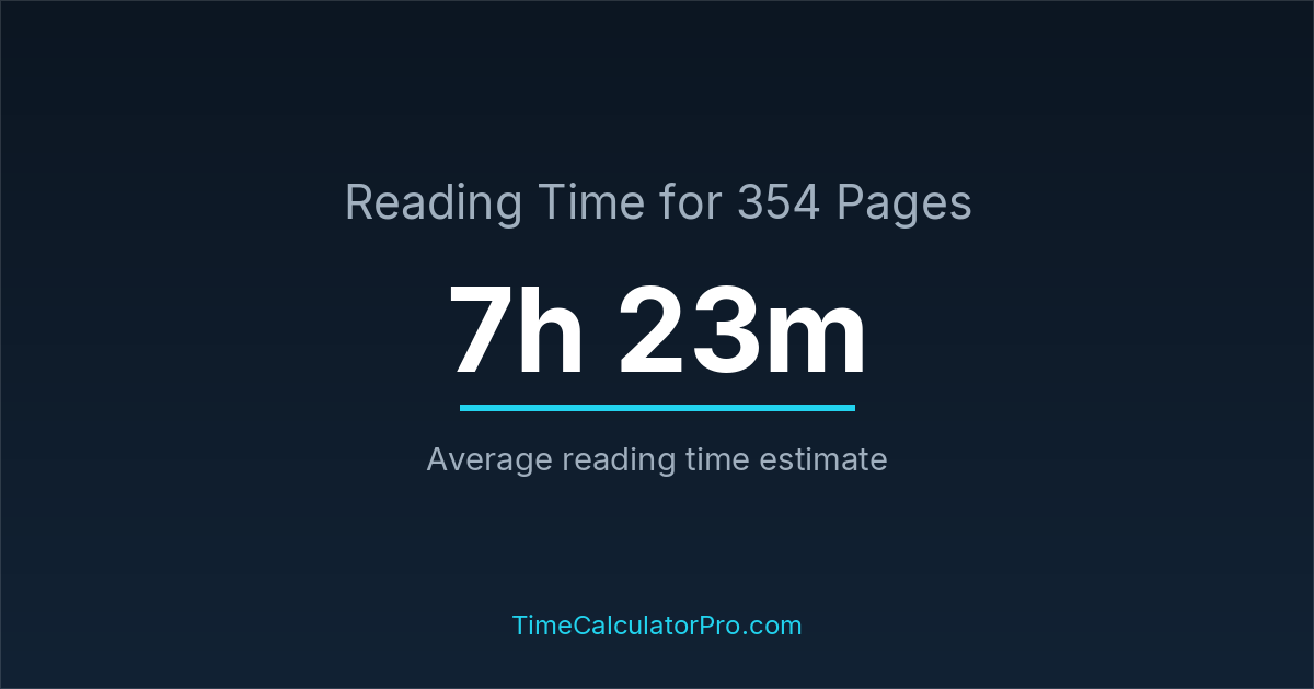 If you read at an average speed of 200 words per minute, reading 354 pages will take approximately 7 hours and 23 minutes. This estimate assumes around 250 words per page, which is typical for most books.