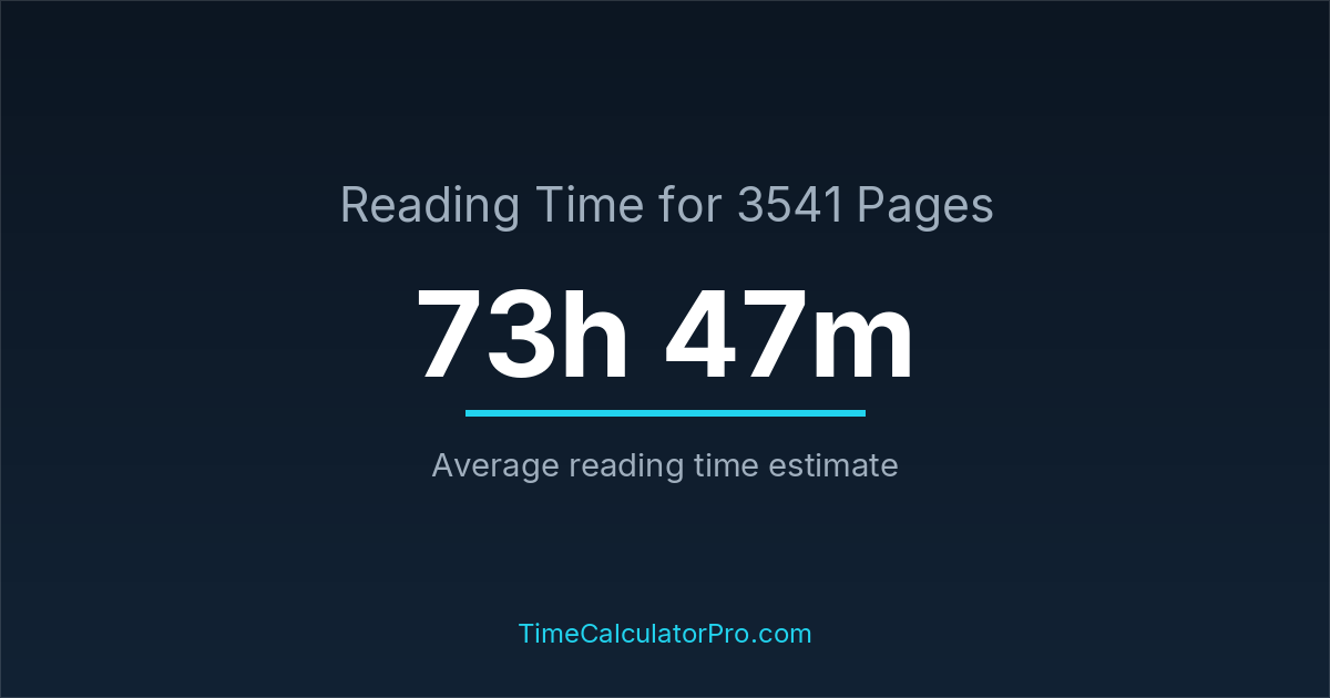 If you read at an average speed of 200 words per minute, reading 3541 pages will take approximately 73 hours and 47 minutes. This estimate assumes around 250 words per page, which is typical for most books.