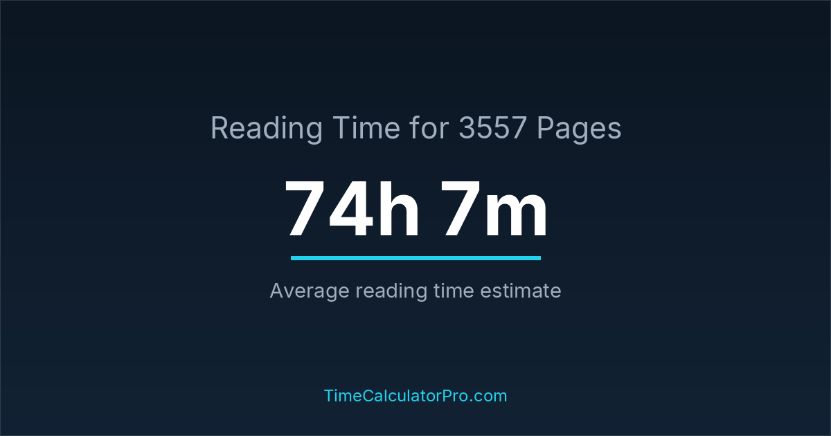Reading 3557 pages takes about 74 hours and 7 minutes.