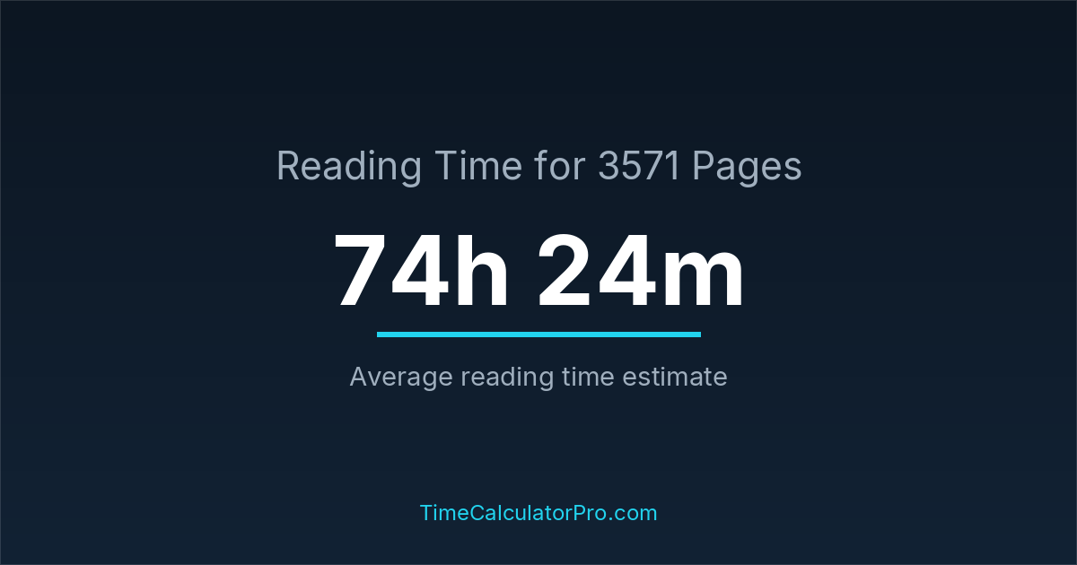 Reading 3571 pages takes about 74 hours and 24 minutes.