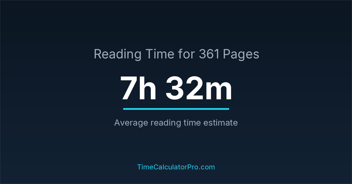 Reading 361 pages takes about 7 hours and 32 minutes.