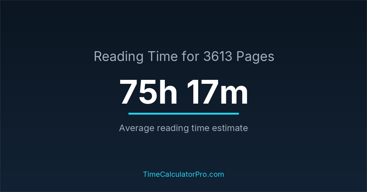 Reading 3613 pages usually takes approximately 75 hours and 17 minutes for the average reader, though this can vary depending on concentration and reading habits.
