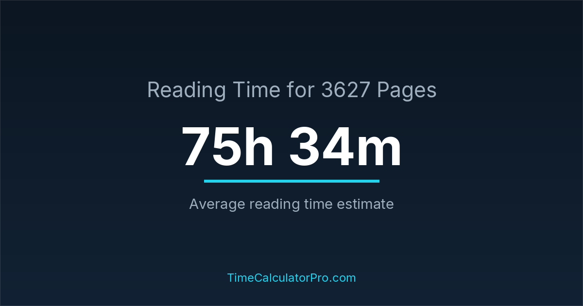 If you are wondering how long it takes to read 3627 pages, the estimated reading time is roughly 75 hours and 34 minutes based on common reading speed averages.