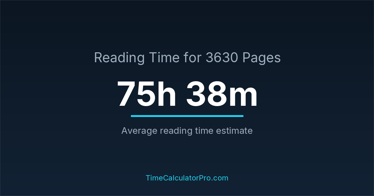 If you read at an average speed of 200 words per minute, reading 3630 pages will take approximately 75 hours and 38 minutes. This estimate assumes around 250 words per page, which is typical for most books.