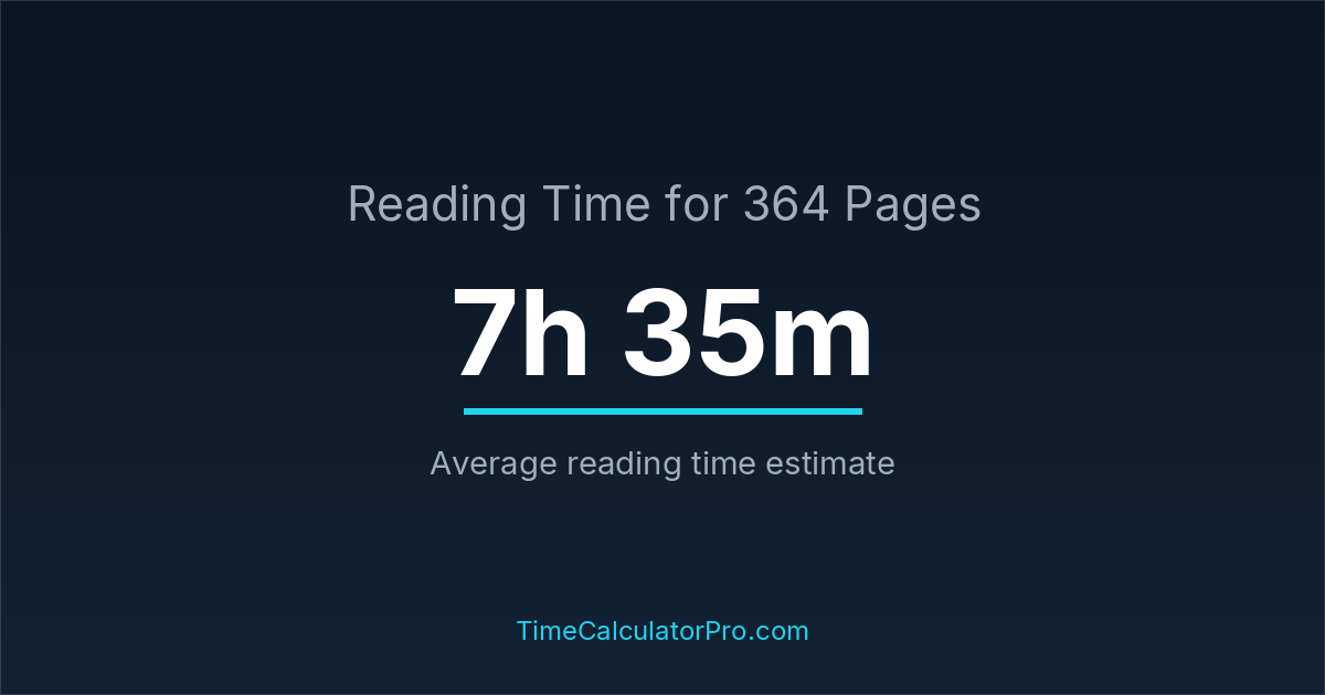 The estimated time to read 364 pages is approximately 7 hours and 35 minutes for an average adult reader.