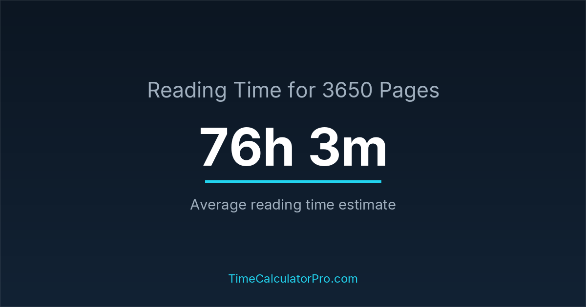 Reading 3650 pages takes about 76 hours and 3 minutes.