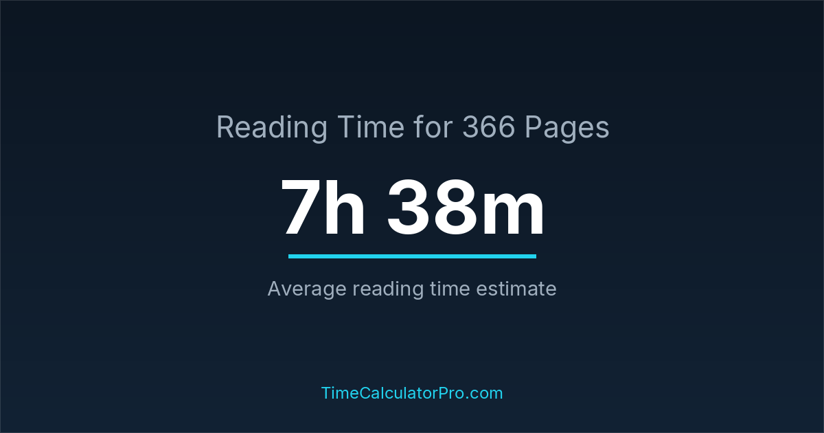 If you read at an average speed of 200 words per minute, reading 366 pages will take approximately 7 hours and 38 minutes. This estimate assumes around 250 words per page, which is typical for most books.