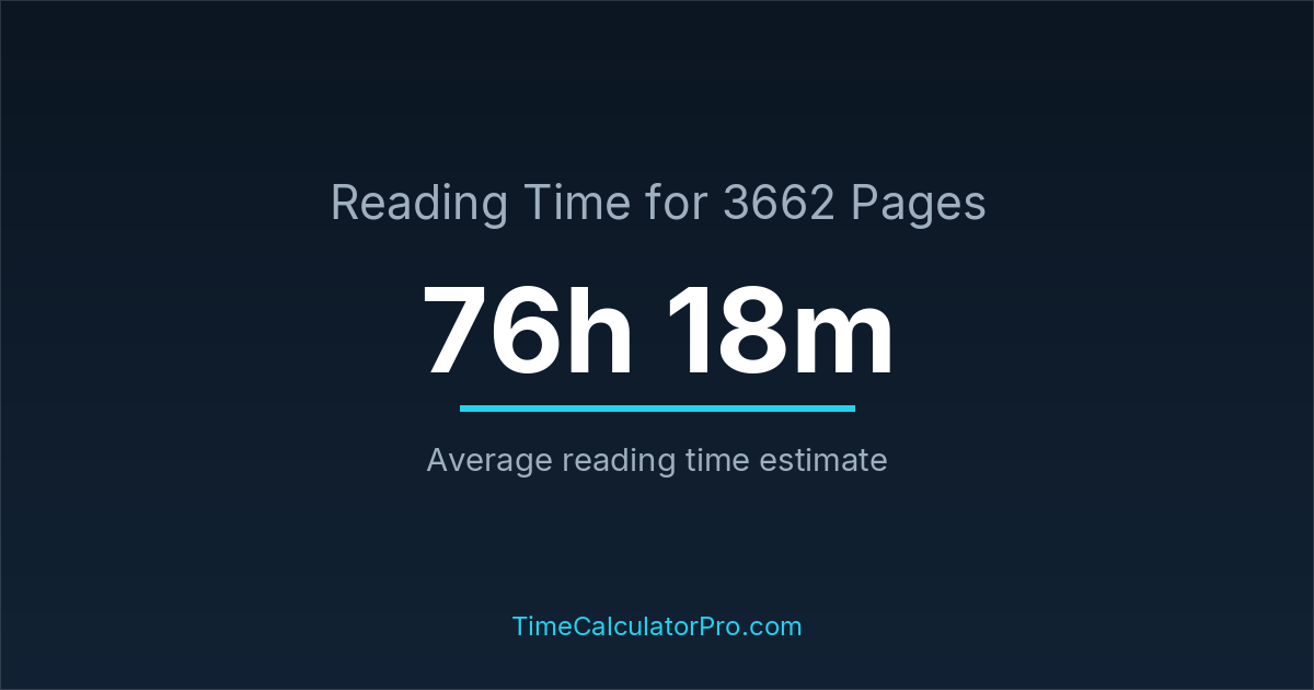 A reading time calculator helps estimate how long it will take to complete 3662 pages before you even begin reading, allowing you to plan your time more effectively.