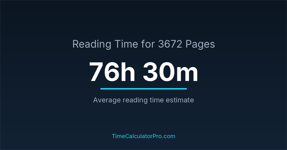 Reading 3672 pages takes about 76 hours and 30 minutes.