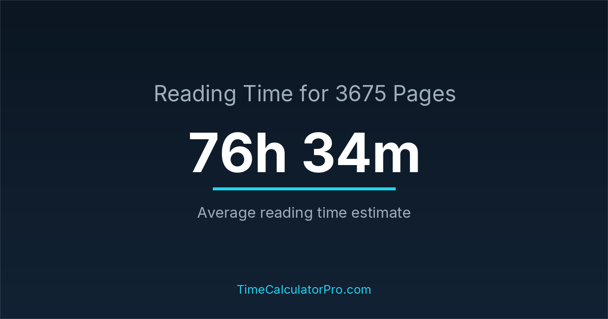 If you read at an average speed of 200 words per minute, reading 3675 pages will take approximately 76 hours and 34 minutes. This estimate assumes around 250 words per page, which is typical for most books.