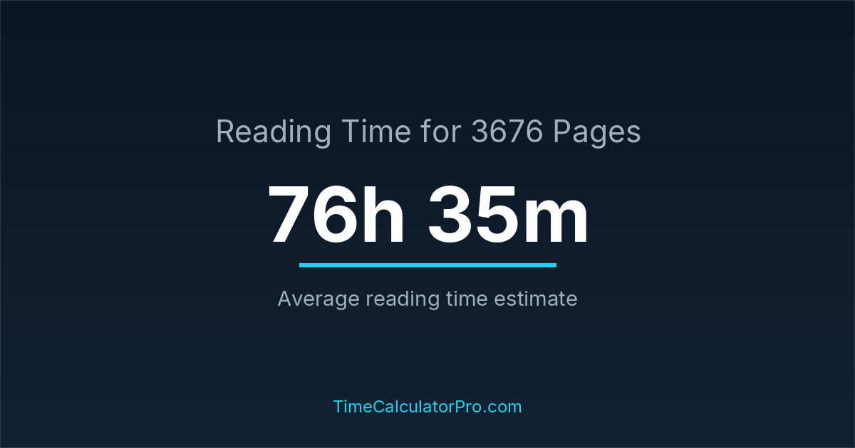 Reading 3676 pages usually takes approximately 76 hours and 35 minutes for the average reader, though this can vary depending on concentration and reading habits.