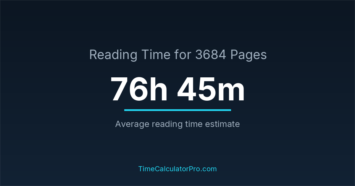 If you read at an average speed of 200 words per minute, reading 3684 pages will take approximately 76 hours and 45 minutes. This estimate assumes around 250 words per page, which is typical for most books.