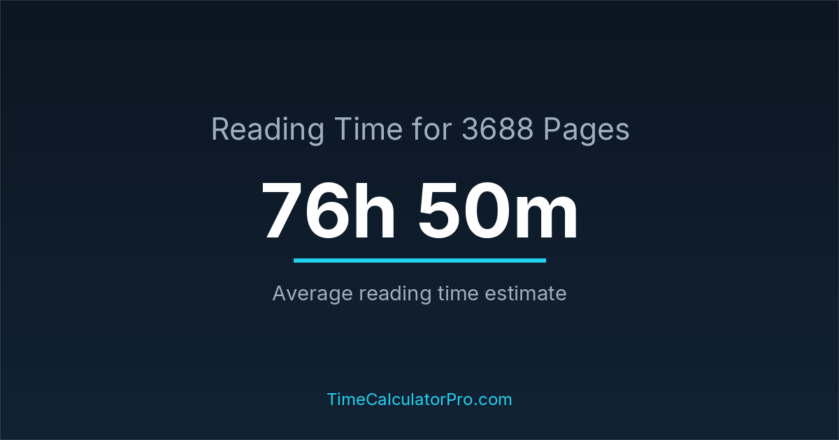 Reading 3688 pages takes about 76 hours and 50 minutes.