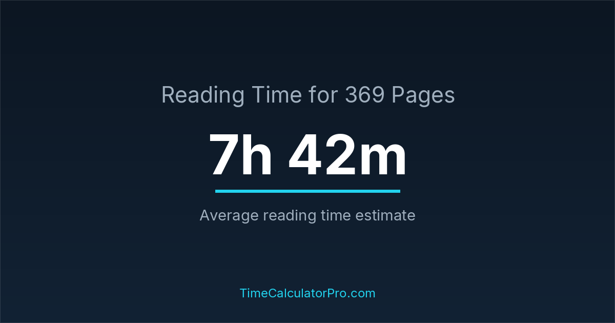 Reading 369 pages usually takes approximately 7 hours and 42 minutes for the average reader, though this can vary depending on concentration and reading habits.