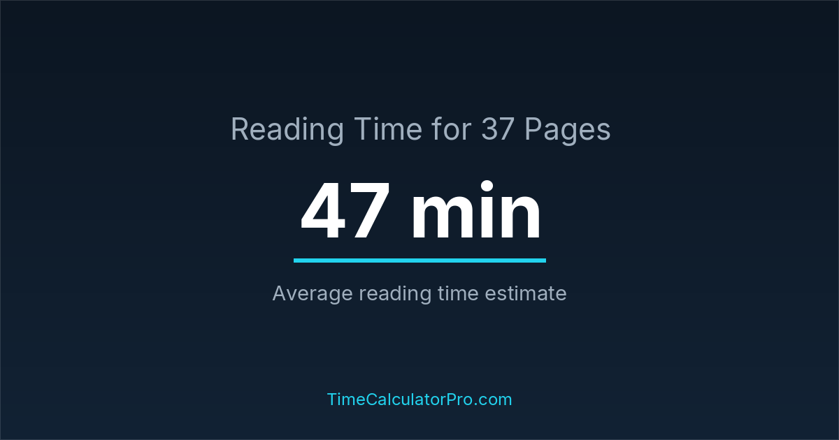 If you read at an average speed of 200 words per minute, reading 37 pages will take approximately 0 hours and 47 minutes. This estimate assumes around 250 words per page, which is typical for most books.