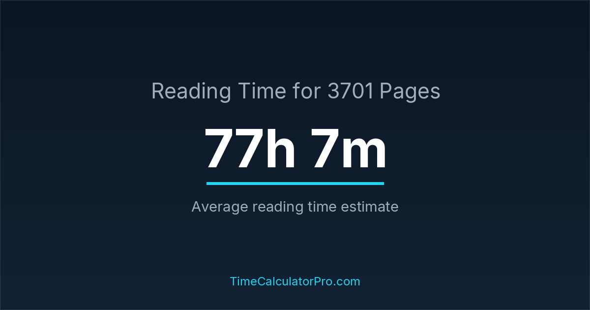 Many readers ask how long it takes to read 3701 pages, and the answer is typically around 77 hours and 7 minutes depending on reading speed.