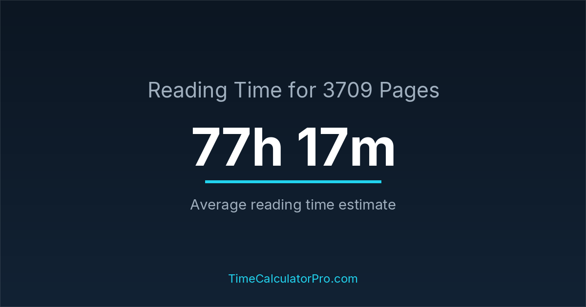 If you read at an average speed of 200 words per minute, reading 3709 pages will take approximately 77 hours and 17 minutes. This estimate assumes around 250 words per page, which is typical for most books.