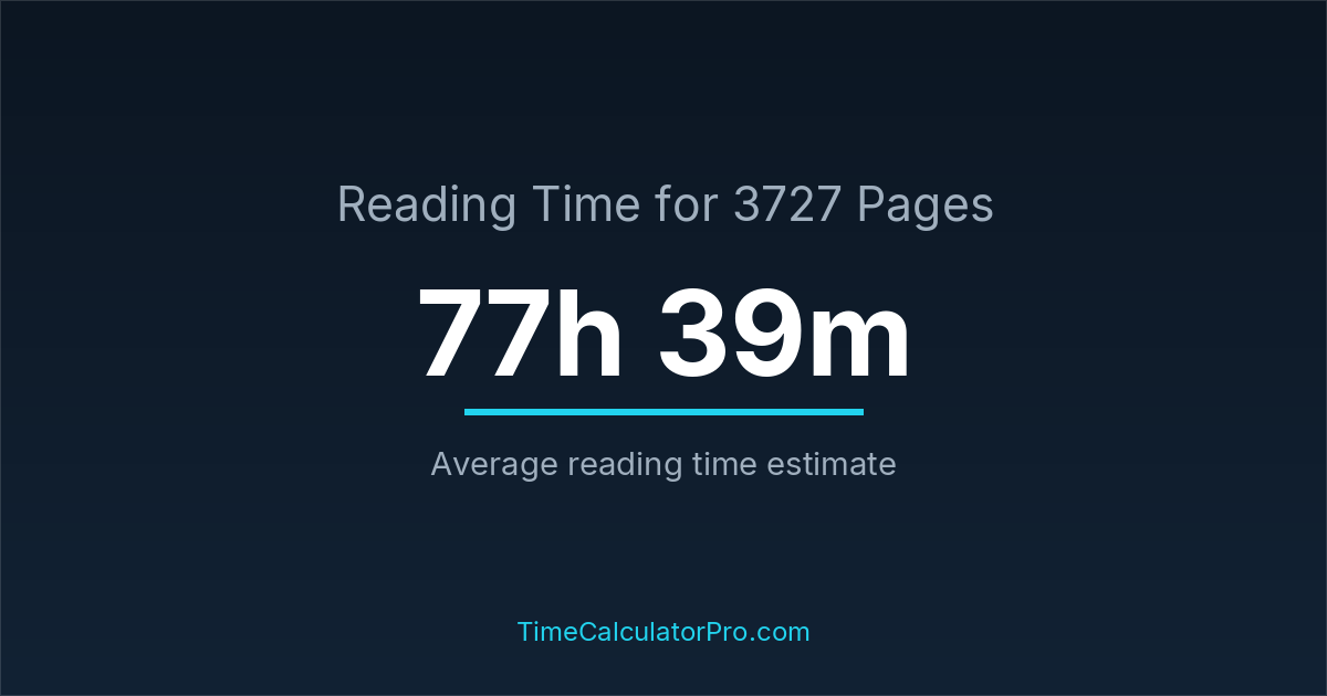 If you read at an average speed of 200 words per minute, reading 3727 pages will take approximately 77 hours and 39 minutes. This estimate assumes around 250 words per page, which is typical for most books.