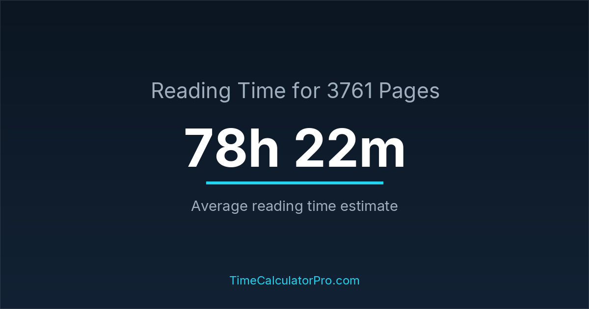 On average, reading 3761 pages may require about 78 hours and 22 minutes for most readers, assuming a standard reading pace and moderate difficulty.