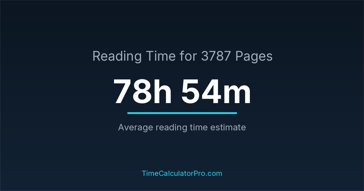 If you read at an average speed of 200 words per minute, reading 3787 pages will take approximately 78 hours and 54 minutes. This estimate assumes around 250 words per page, which is typical for most books.
