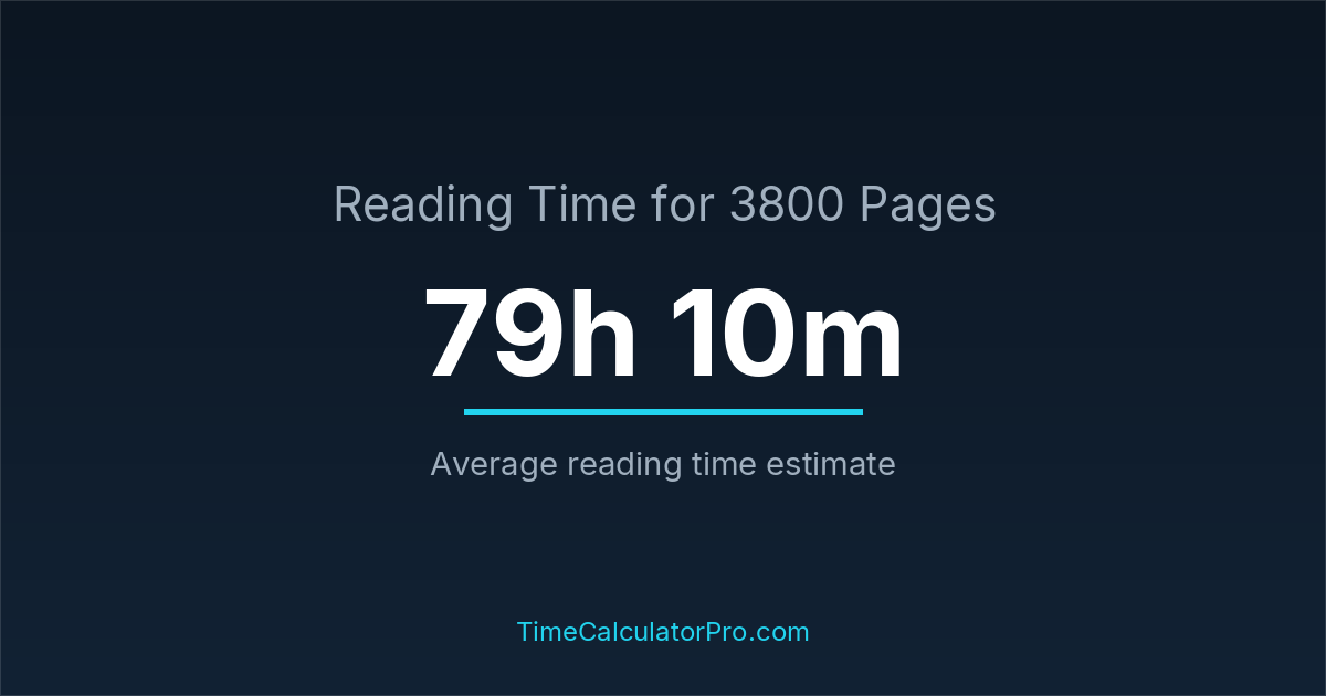 Estimating how long it takes to read 3800 pages can help you plan your reading schedule, with an average time of 79 hours and 10 minutes.