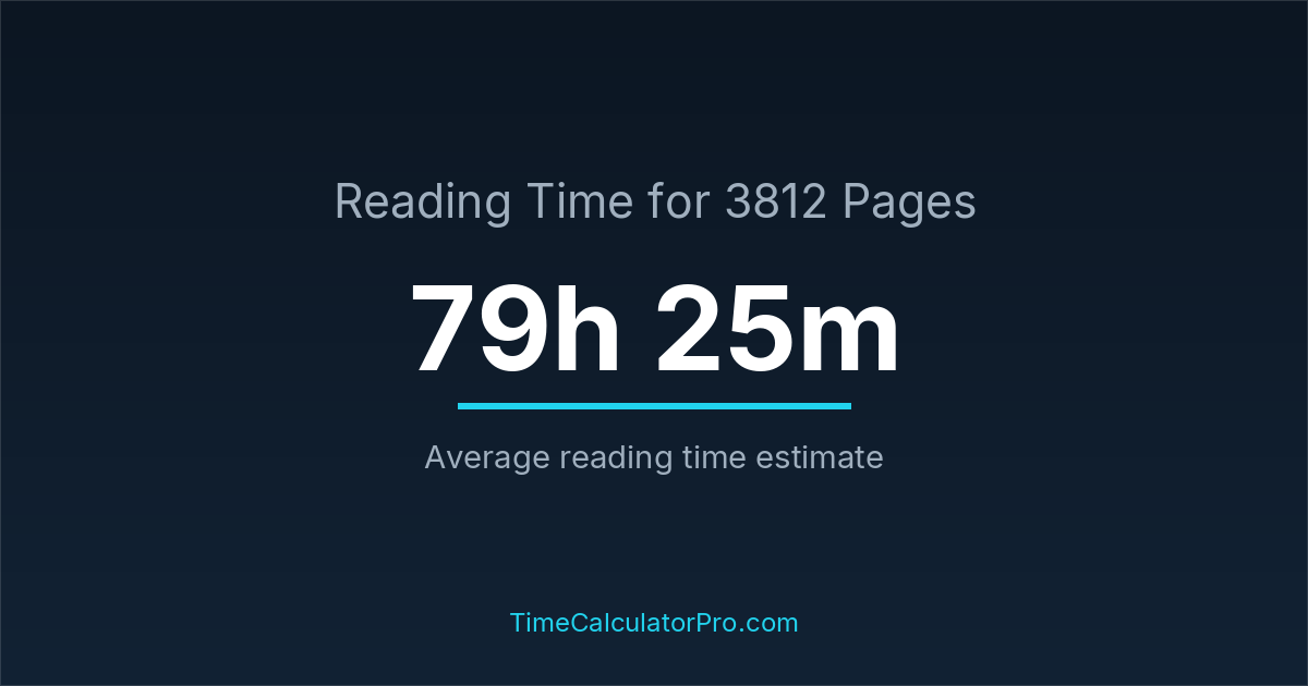 If you read at an average speed of 200 words per minute, reading 3812 pages will take approximately 79 hours and 25 minutes. This estimate assumes around 250 words per page, which is typical for most books.