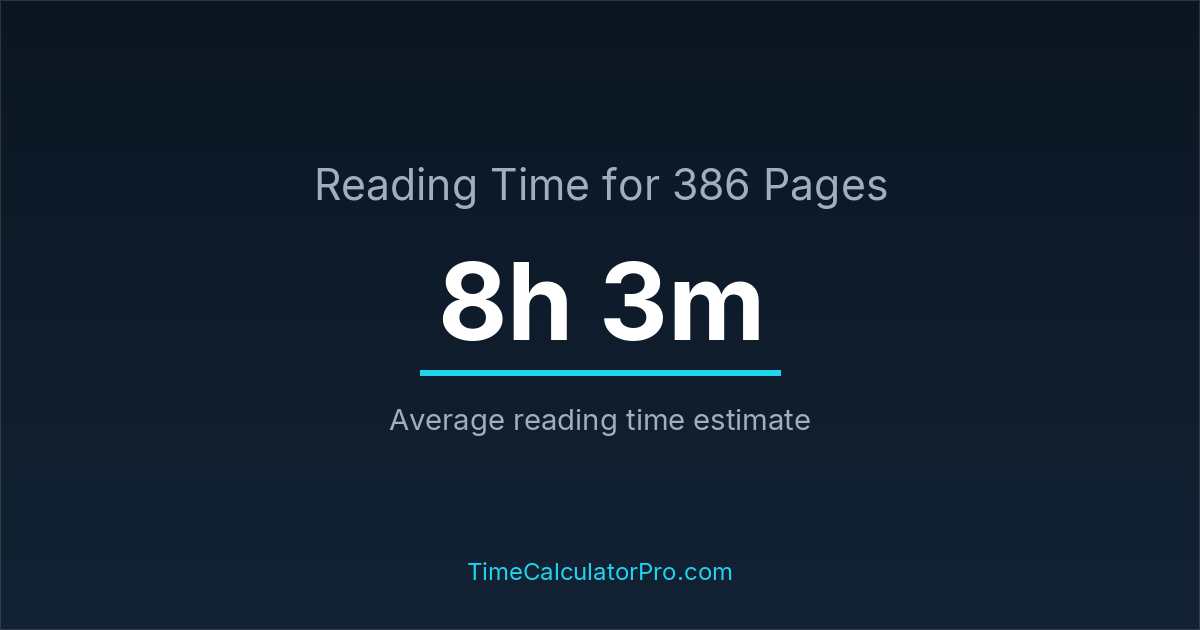 Reading 386 pages takes about 8 hours and 3 minutes.
