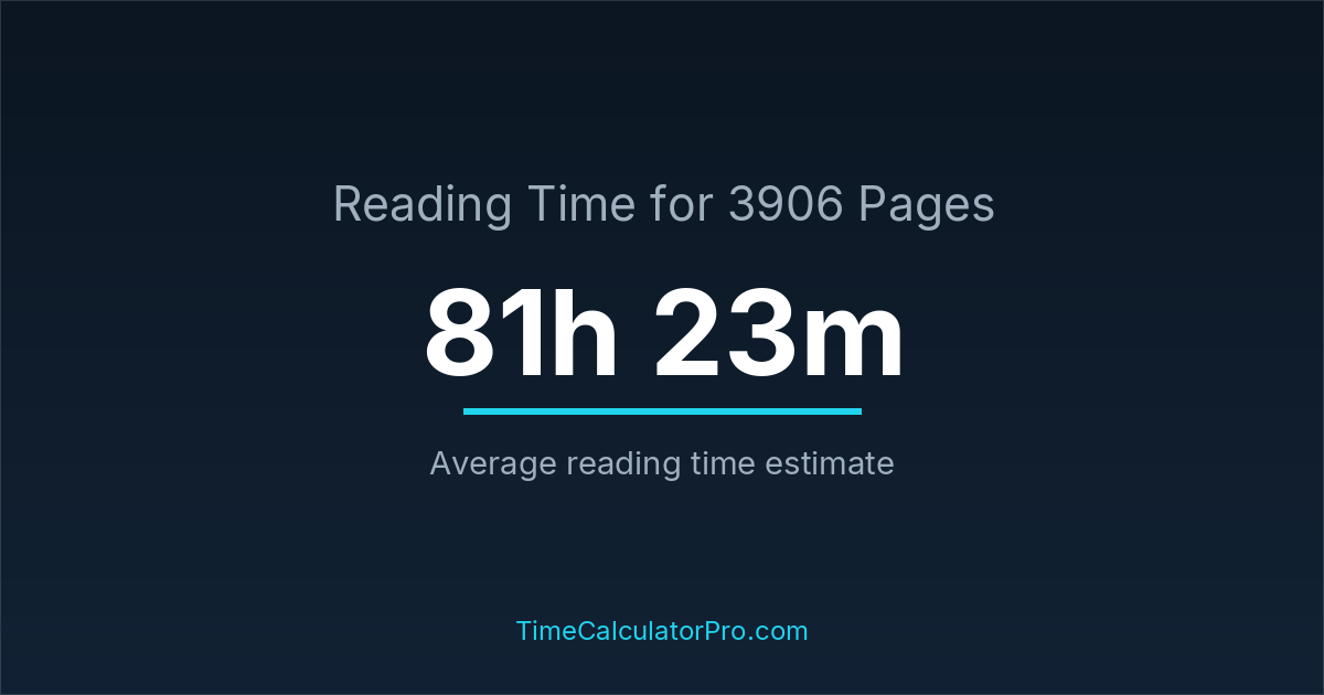 If you read at an average speed of 200 words per minute, reading 3906 pages will take approximately 81 hours and 23 minutes. This estimate assumes around 250 words per page, which is typical for most books.