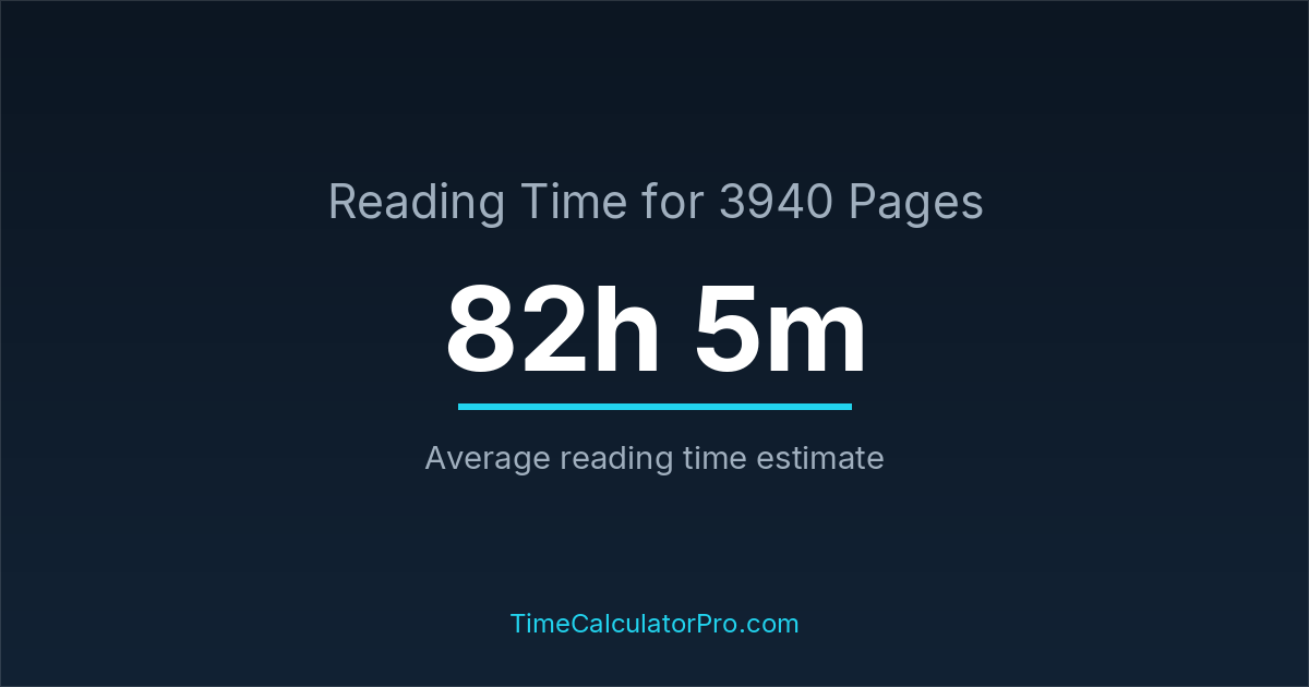 Reading 3940 pages takes about 82 hours and 5 minutes.