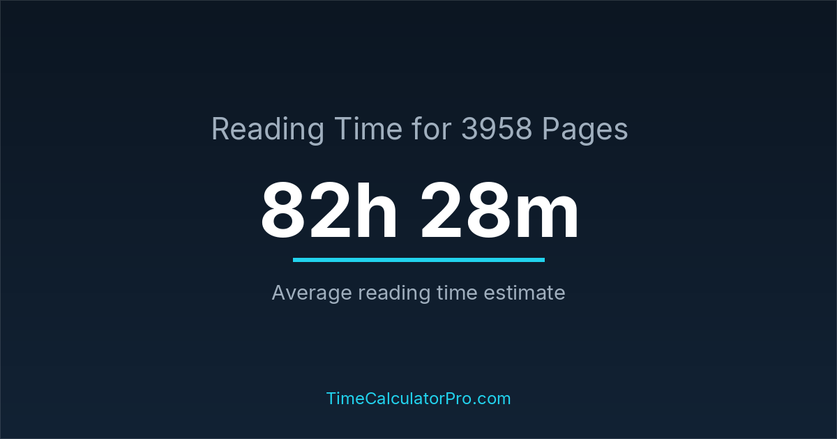 Reading 3958 pages takes about 82 hours and 28 minutes.