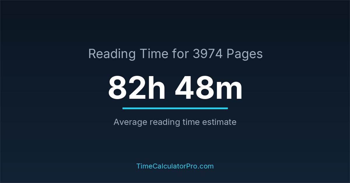 Reading 3974 pages takes about 82 hours and 48 minutes.