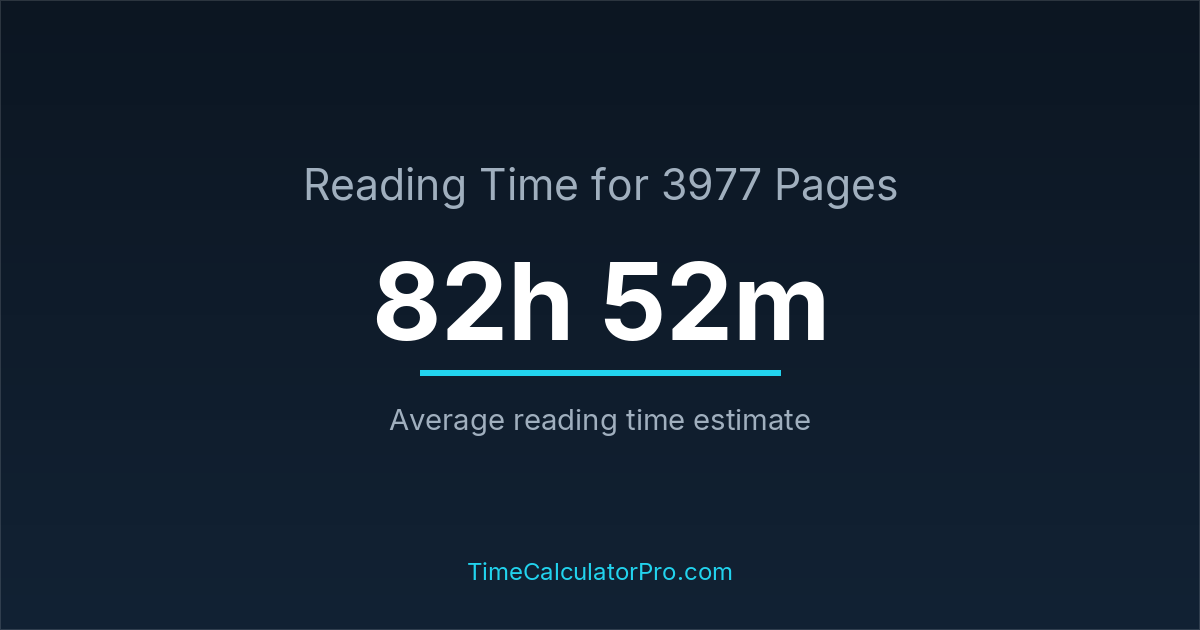 The estimated time to read 3977 pages is approximately 82 hours and 52 minutes for an average adult reader.