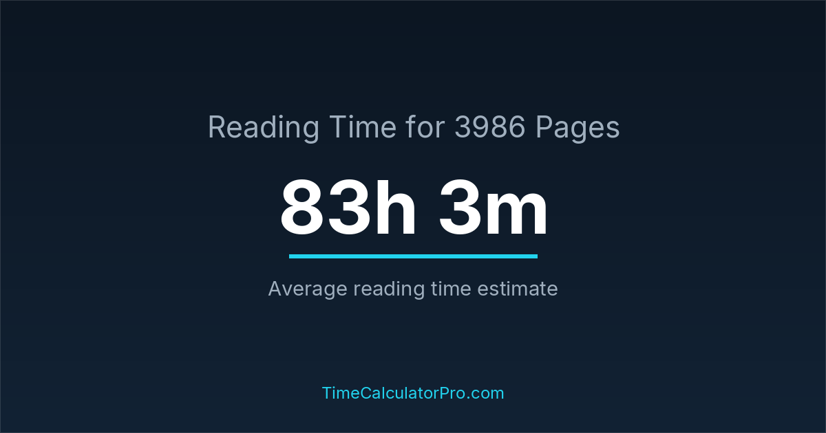 Reading 3986 pages takes about 83 hours and 3 minutes.