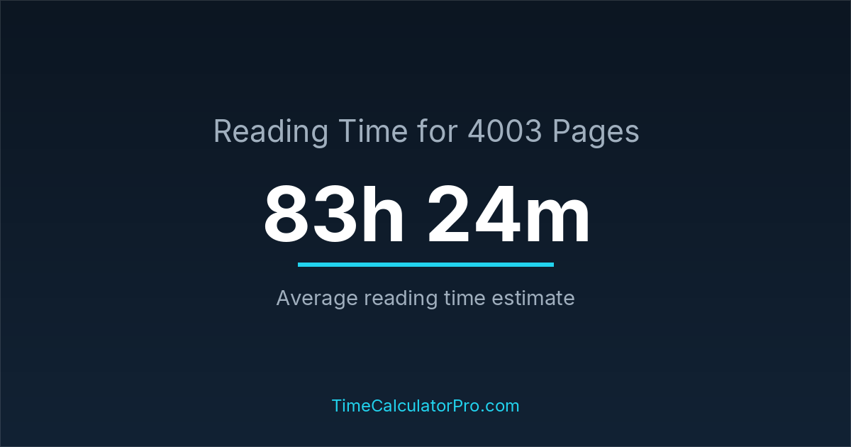 Based on standard reading speeds, reading 4003 pages would take roughly 83 hours and 24 minutes under normal conditions.