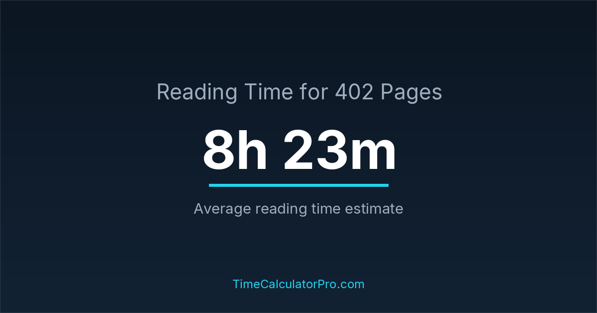 Reading 402 pages takes about 8 hours and 23 minutes.