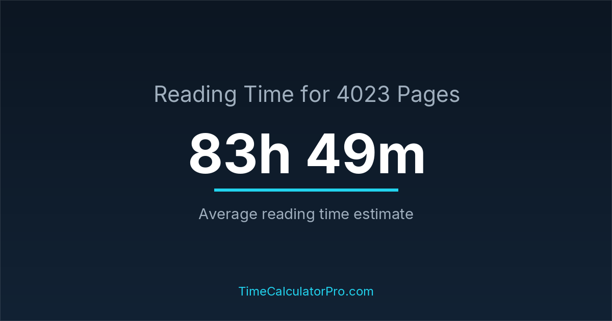 Reading 4023 pages usually takes approximately 83 hours and 49 minutes for the average reader, though this can vary depending on concentration and reading habits.
