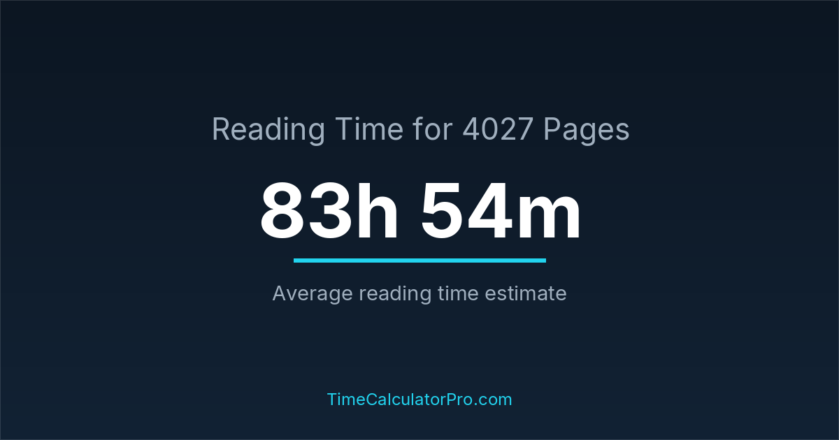 Using a reading time calculator, you can estimate that 4027 pages will take around 83 hours and 54 minutes to complete.