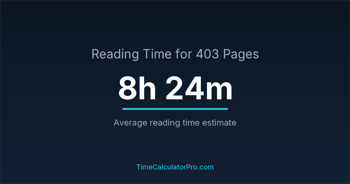 On average, reading 403 pages may require about 8 hours and 24 minutes for most readers, assuming a standard reading pace and moderate difficulty.