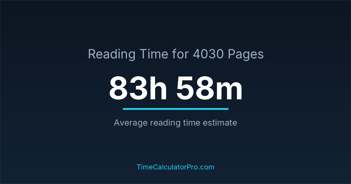 Many readers ask how long it takes to read 4030 pages, and the answer is typically around 83 hours and 58 minutes depending on reading speed.