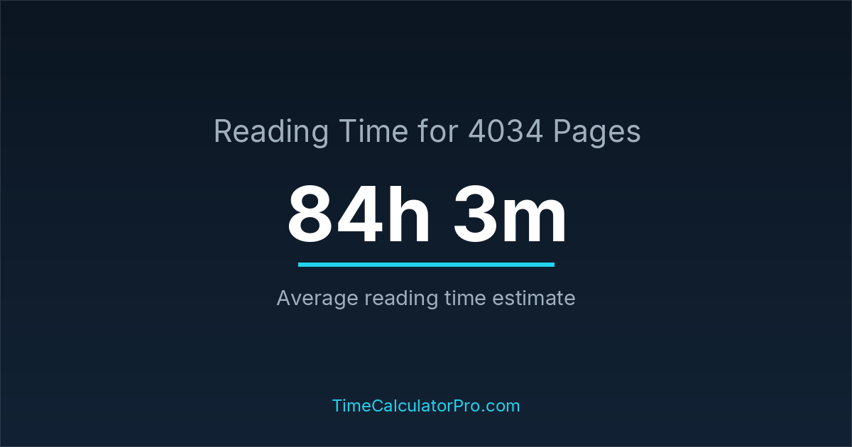 Reading 4034 pages takes about 84 hours and 3 minutes.