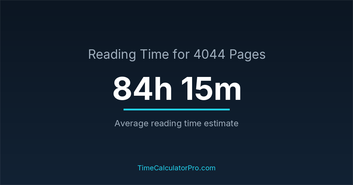 Many readers ask how long it takes to read 4044 pages, and the answer is typically around 84 hours and 15 minutes depending on reading speed.
