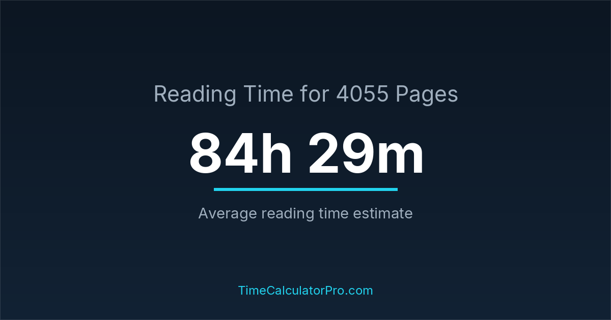 If you are wondering how long it takes to read 4055 pages, the estimated reading time is roughly 84 hours and 29 minutes based on common reading speed averages.