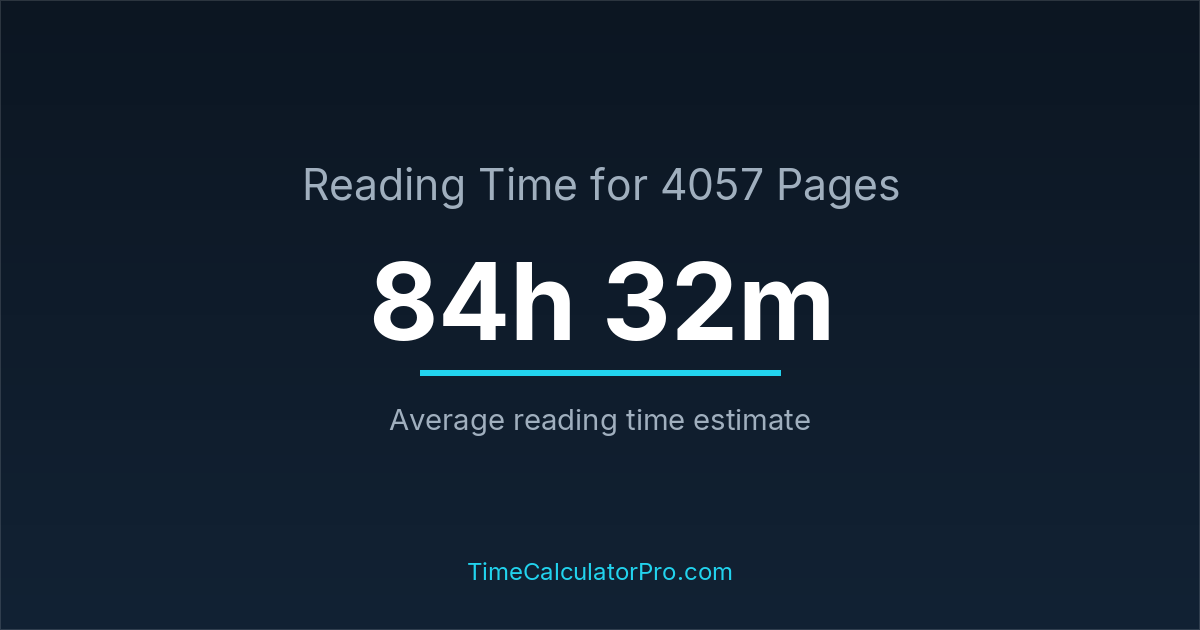 Reading 4057 pages takes about 84 hours and 32 minutes.