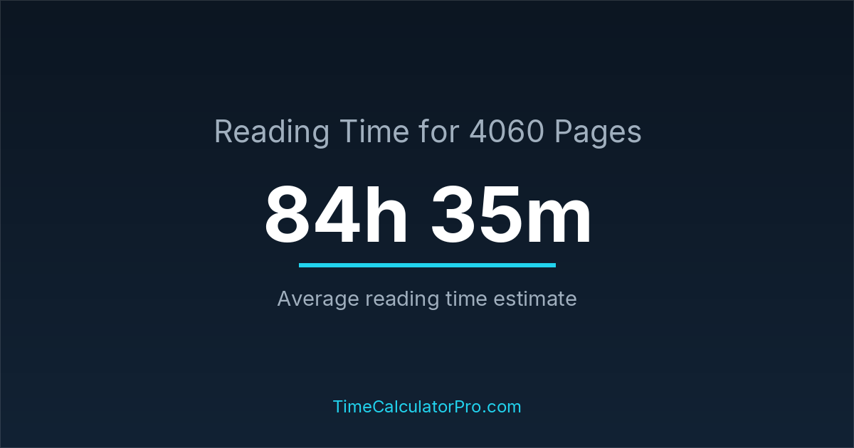 Reading 4060 pages usually takes approximately 84 hours and 35 minutes for the average reader, though this can vary depending on concentration and reading habits.