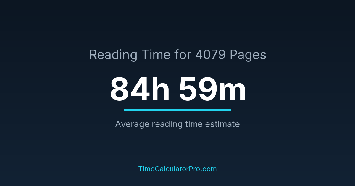 Using a reading time calculator, you can estimate that 4079 pages will take around 84 hours and 59 minutes to complete.