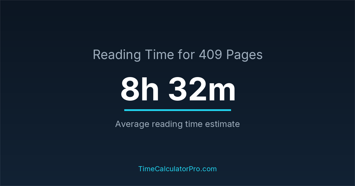 Reading 409 pages takes about 8 hours and 32 minutes.
