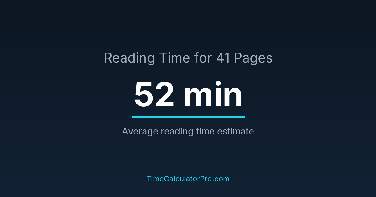 Using a reading time calculator, you can estimate that 41 pages will take around 0 hours and 52 minutes to complete.