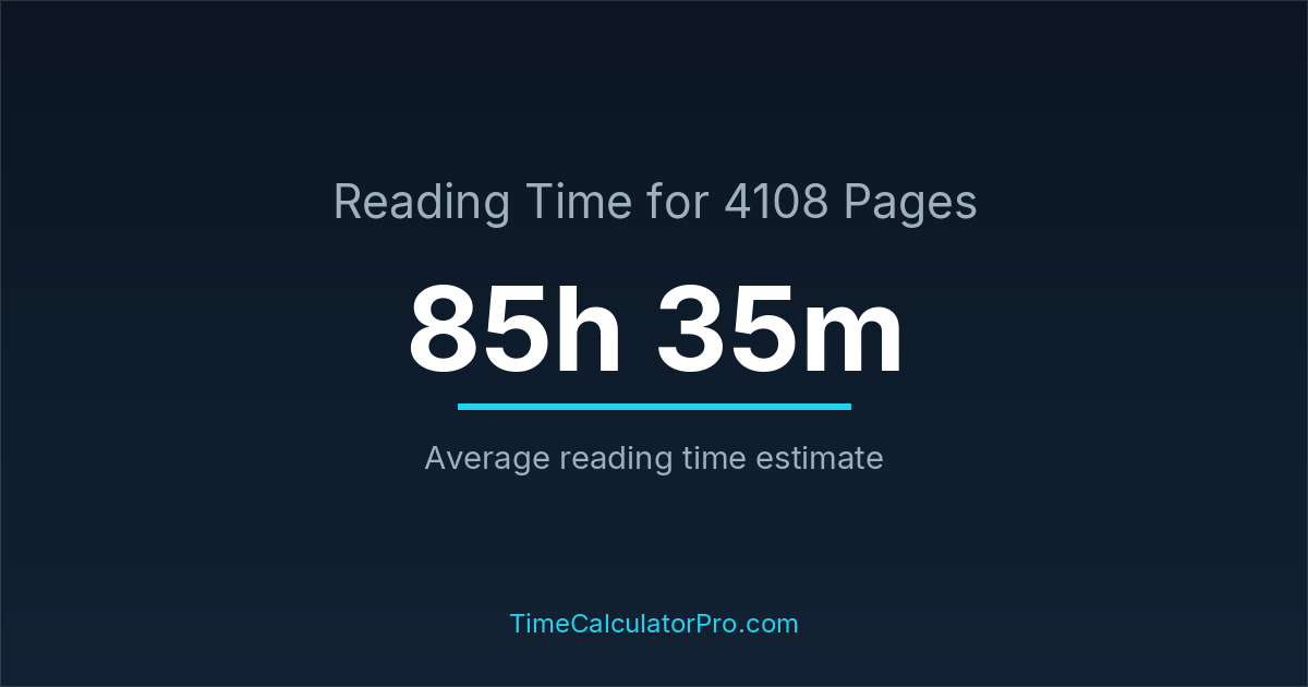 Reading 4108 pages usually takes approximately 85 hours and 35 minutes for the average reader, though this can vary depending on concentration and reading habits.